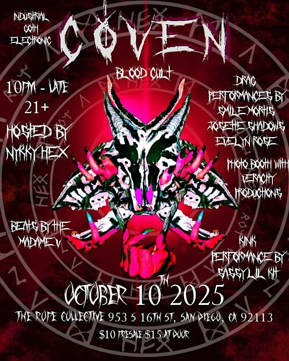 COVEN is at the intersection of the alternative scene and underground queer culture. Providing a no limits stage for alternative artists to showcase performances and talents you don't find at other parties. A subversive party celebrating queer existence and everything that makes us weird with party games and immersive activities testing audience members commitment to the tenets of horror, filth and glamour.